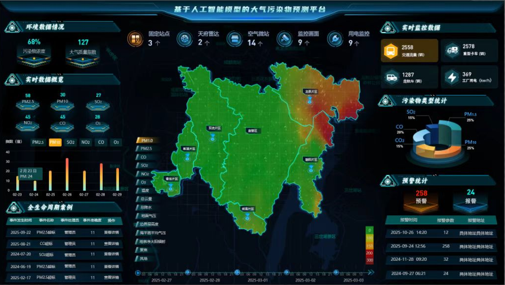 大氣汙染成因複雜(zá)、來源多樣,傳統治理方式常麵臨“看得見汙染、找不準源頭”的困境。2023年項目(mù)啟動以來,天晟(shèng)源環保聯合成都信息工程大學、西南石油大學、中國民用航空飛行學院等多家高(gāo)校科研力(lì)量,聚焦多源異構數據融合,汙染溯源精度等行業(yè)痛點開展(zhǎn)關鍵技術聯合攻關